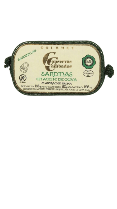 Sardinillas seleccionadas por su calidad y tamaño. Colocadas a mano y elaboradas con aceite de oliva. Destacan por su aspecto plateado y magnífica presentación; brillantes y sabrosas, con una textura suave y jugosa hacen de esta conserva tradicional uno de nuestros manjares más exquisitos. Su sabor se incrementa con el paso del tiempo, debido al reposo y maduración en nuestros almacenes.